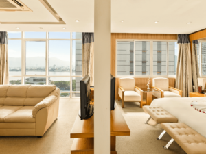 - Phòng Suite được thiết kế sang trọng và tinh tế với chiếc giường êm ái, cùng diện tích lớn bao gồm phòng khách sang trọng.